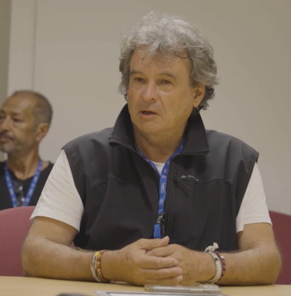 Au cœur de cette aventure se trouve Éric Julien, géographe, explorateur et fondateur de l’association Tchendukua – Ici et Ailleurs. Son lien avec les Kogis débute dans les années 1980, à la suite d’une expérience personnelle marquante dans la Sierra Nevada de Santa Marta, où il est soigné par la communauté après un œdème pulmonaire. Cette rencontre devient le point de départ d’un engagement de long terme. Depuis plusieurs décennies, Éric Julien œuvre à la restitution des terres ancestrales des peuples autochtones et à la reconnaissance de leurs savoirs. Dans le cadre du film, il joue un rôle de médiateur, facilitant le dialogue entre les représentants kogis et les institutions scientifiques européennes. Son parcours illustre une démarche fondée sur l’écoute, le respect et la conviction que la transition écologique passe aussi par une transformation culturelle et spirituelle.